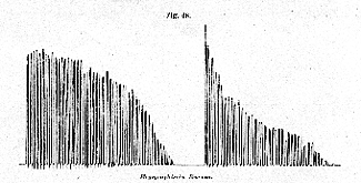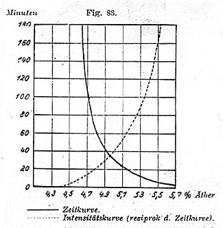 Mit einem oder mehreren Fingern der fixierten Hand wird in kurzen, regelmäßigen Intervallen an einer Schnur, die über eine Rolle läuft, ein Gewicht gehoben und die Hubhöhen mittels eines mitlaufenden Zeigers auf die berußte Trommel des Kymographions geschrieben. Die Hubhöhen werden mit zunehmender Ermüdung niedriger und geben eine in der Regel für jedes Individuum charakteristische Form der Ermüdungskurve. (vgl. Fig.68) |